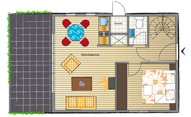 Mit zwei getrennten Schlafzimmern (eines im EG, eines im OG) bieten sie optimalen Platz für bis zu vier Personen. Im Erdgeschoss laden das großzügige Wohnzimmer zum Relaxen, Lesen, Fernsehen oder gemütlichem Beisammensein ein. Auf der Sonnenterrasse ist ausreichend Platz für den Grill und die Liegestühle - ohne neugierige Nachbarsblicke. Und wenn der große Hunger kommt: die Küchenzeile und die Essecke stehen bereit. Für die „kleinen Geschäfte" gibt es im EG ein WC. Bitte beachten Sie, dass auf vielfachen Wunsch unserer Gäste beide Häuser NICHT-RAUCHER Häuser sind. Wir bitten unsere Gäste, die den Tabak Genuss schätzen, ausserhalb der Häuser zu rauchen. Vielen Dank. |